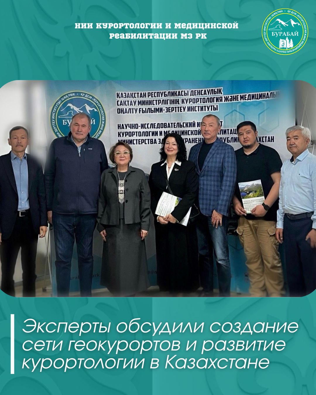 В НИИ курортологии и медицинской реабилитации МЗ РК под председательством директора института Саягуль Каиргельдиной состоялась рабочая встреча с участием ведущих экспертов в области геонаук и развития курортных территорий: председателя Национального комитета по геокурортам ЮНЕСКО, заместителя директора Института геологических наук им. К.И. Сатпаева, доктора геолого-минералогических наук Саиды Нигматовой, председателя Ассоциации «Евразийская сеть геокурортов» Альфреда Акбашева (Республика Башкортостан) и президента Ассоциации развития курортов «Санкур-эволюция» Сергея Дмитриева (г. Екатеринбург, Российская Федерация).