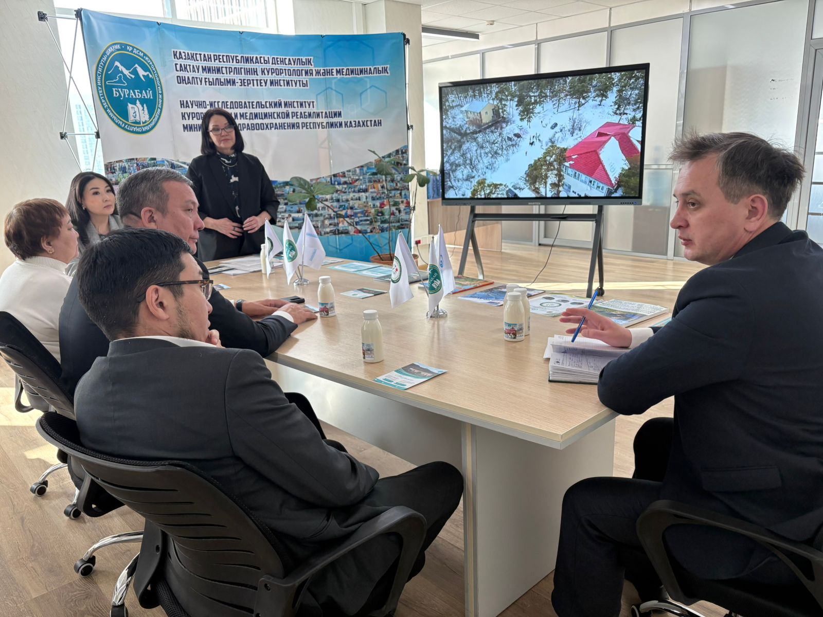 The meeting was opened by Deputy Director for Economic, Administrative and Economic Support Nurlan Nysambayev. In his speech, he introduced the participants to the history of the Institute's formation, key areas of activity and strategic development prospects. Special attention was paid to the potential of the sanatorium industry and the opportunities for expanding partnership. In conclusion, he thanked those present for their interest and expressed confidence in further constructive cooperation.