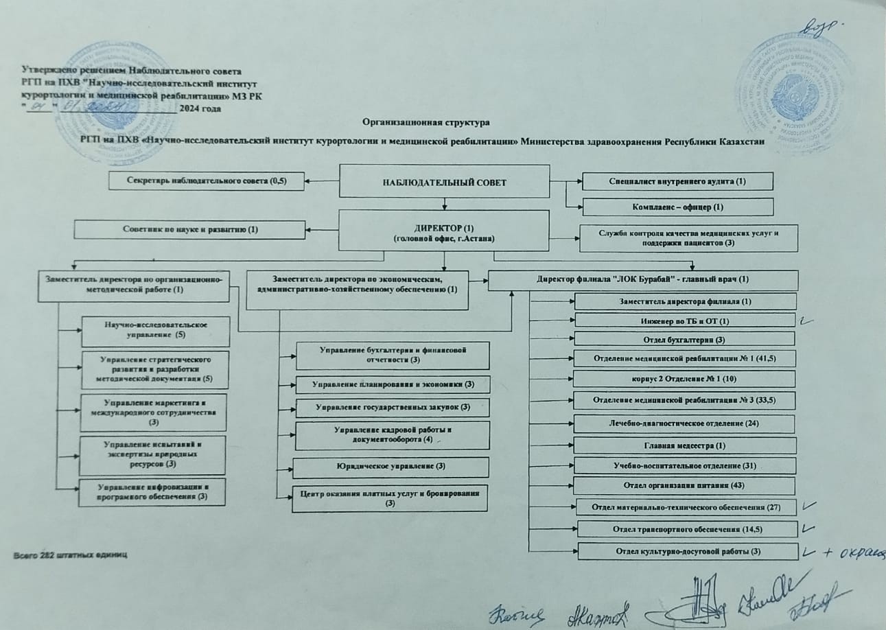 In accordance with Order No. 67 dated July 18, 2024, on the basis of the Republican State Enterprise "Scientific Research Institute of Balneology and Medical Rehabilitation" of the Ministry of Health of the Republic of Kazakhstan, a branch "Medical and wellness complex "Burabai" was established.