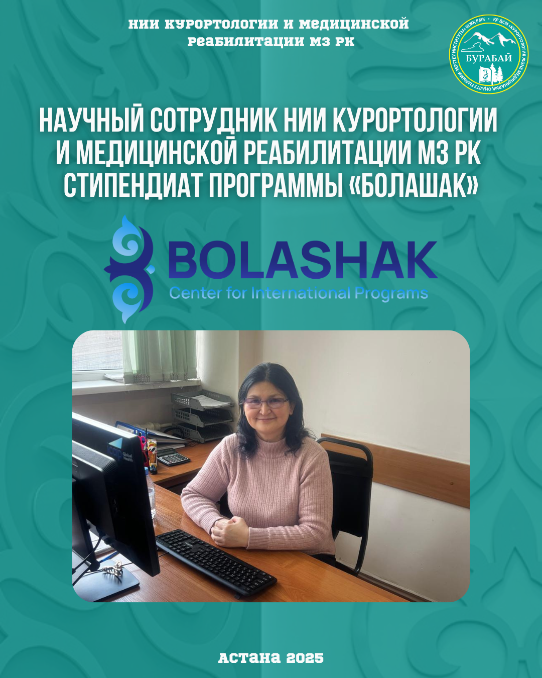 Научный сотрудник НИИ курортологии и медицинской реабилитации МЗ РК — стипендиат программы «Болашак»